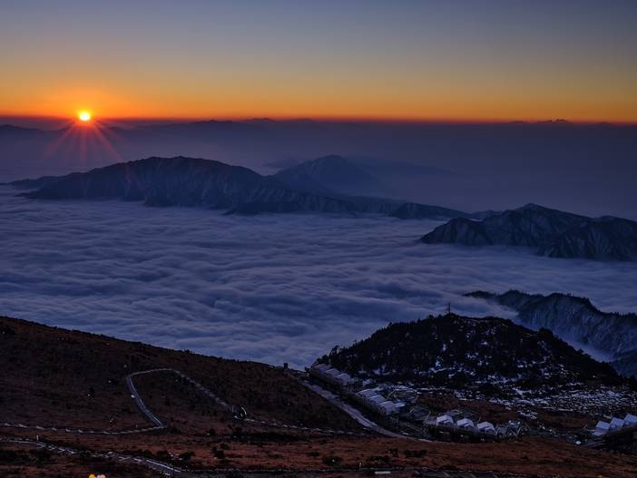 早起徒步前往牛背山金顶观景平台,守候贡嘎雪山日照金山和云海景观,一起领略大自然的奇妙风光,运气好还可以看到佛光!拍摄完后返回营地,收拾行李乘车下山,下午17点左右返回成都,圆满结束这五天四晚的川西之旅。